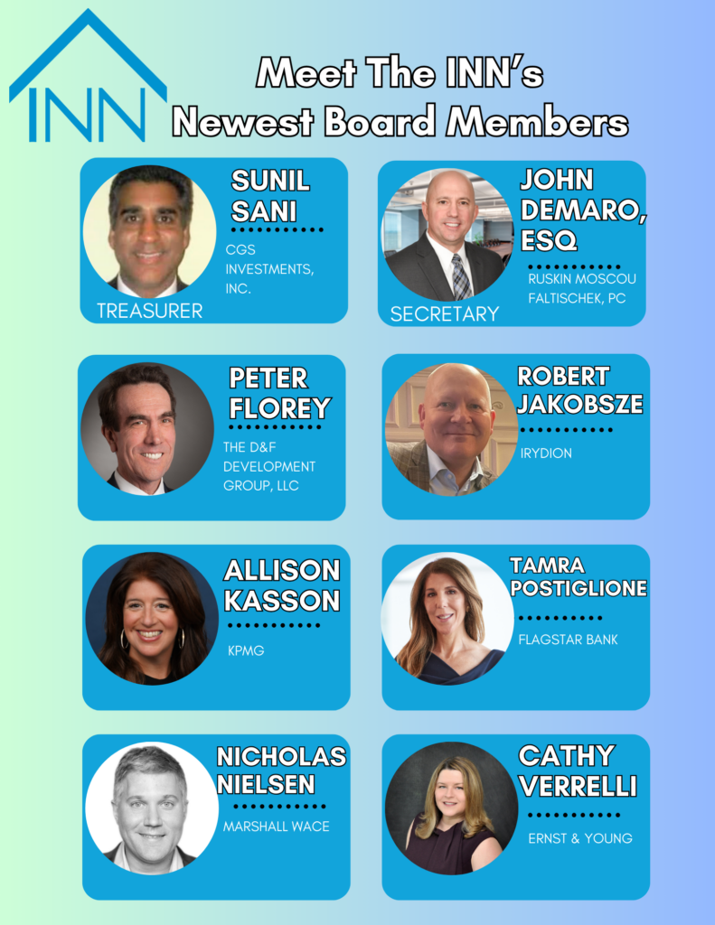 The INN currently has 23 active Board Members who work tirelessly to support The INN’s mission of serving hungry and homeless Long Islanders with Dignity, Respect & Love. We are proud to welcome eight of the newest Members of the Board, who already have contributed their rich experiences, skills, and expertise to our growing INN family.