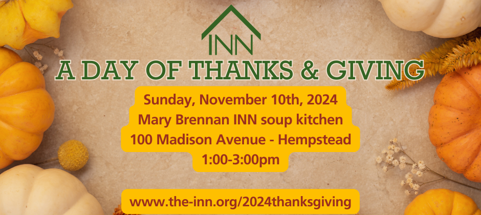 Join us on Sunday, November 10th, 2024 for A Day of Thanks & Giving at the Mary Brennan INN soup kitchen.