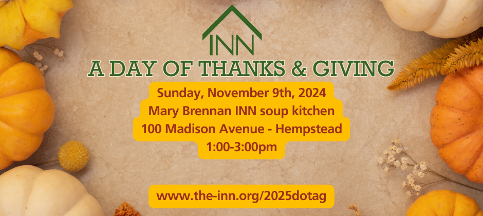 The 2025 INN Luncheon Will Be Held On Friday, October 24th At the Garden City Hotel. Registration to attend this event is closed. Please visit the event page to make a general donation or sponsor a meal at the Mary Brennan INN soup kitchen.