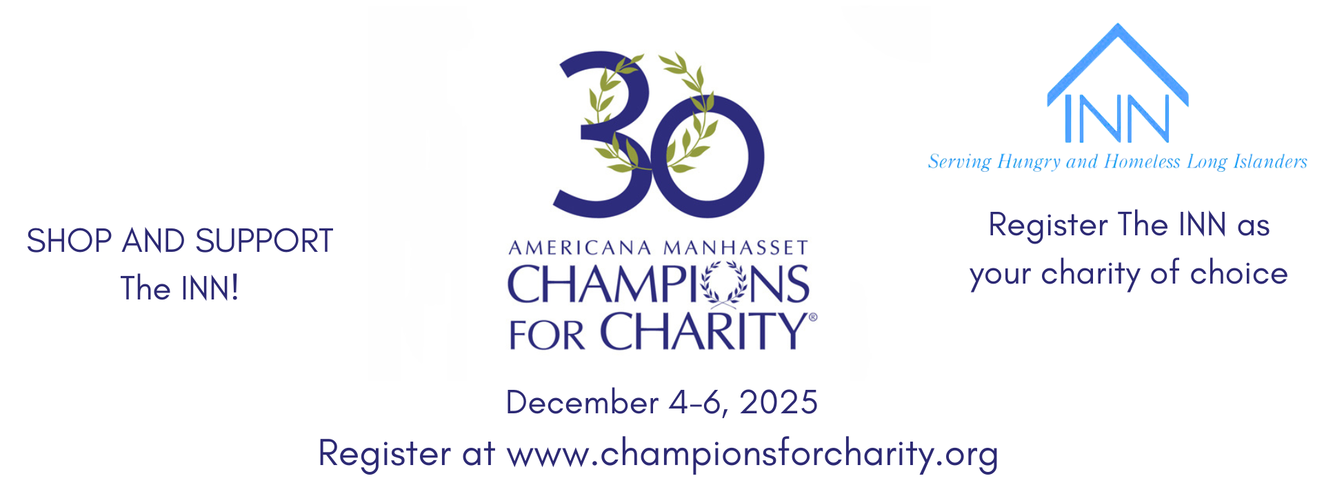 Champions for Charity is Americana Manhasset's annual holiday shopping benefit event! Shop for the holidays at participating Americana Manhasset stores between December 4th and December 6th and support The INN! Before you go, register The INN (Interfaith Nutrition Network), as your charity of choice on the Champions for Charity website, www.championsforcharity.org
